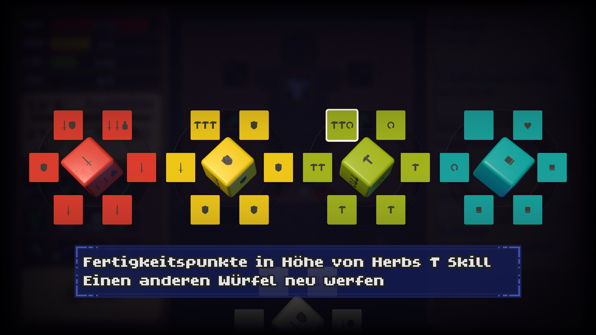 Sammle Erfahrungspunkte und verbessere deine Attribute, erhalte neue Seiten für deine Kampfwürfel oder lerne Fertigkeiten und Zaubersprüche. Ein umfangreicher Skill-Tree für die vier Attribute Stärke, Agilität, Skill und Talent ermöglicht verschiedene Builds vom Nahkampfexperten bis zum Kampfmagier.